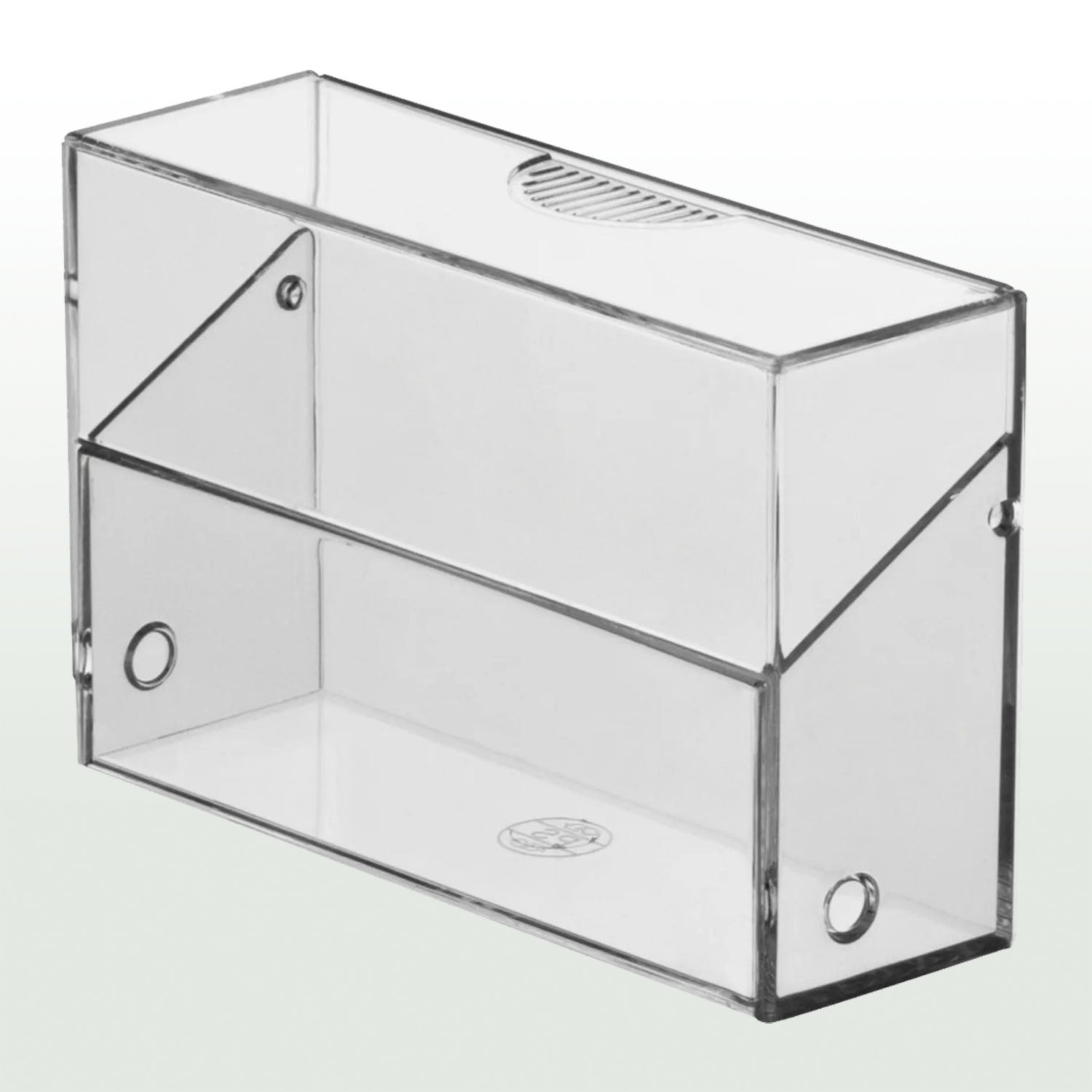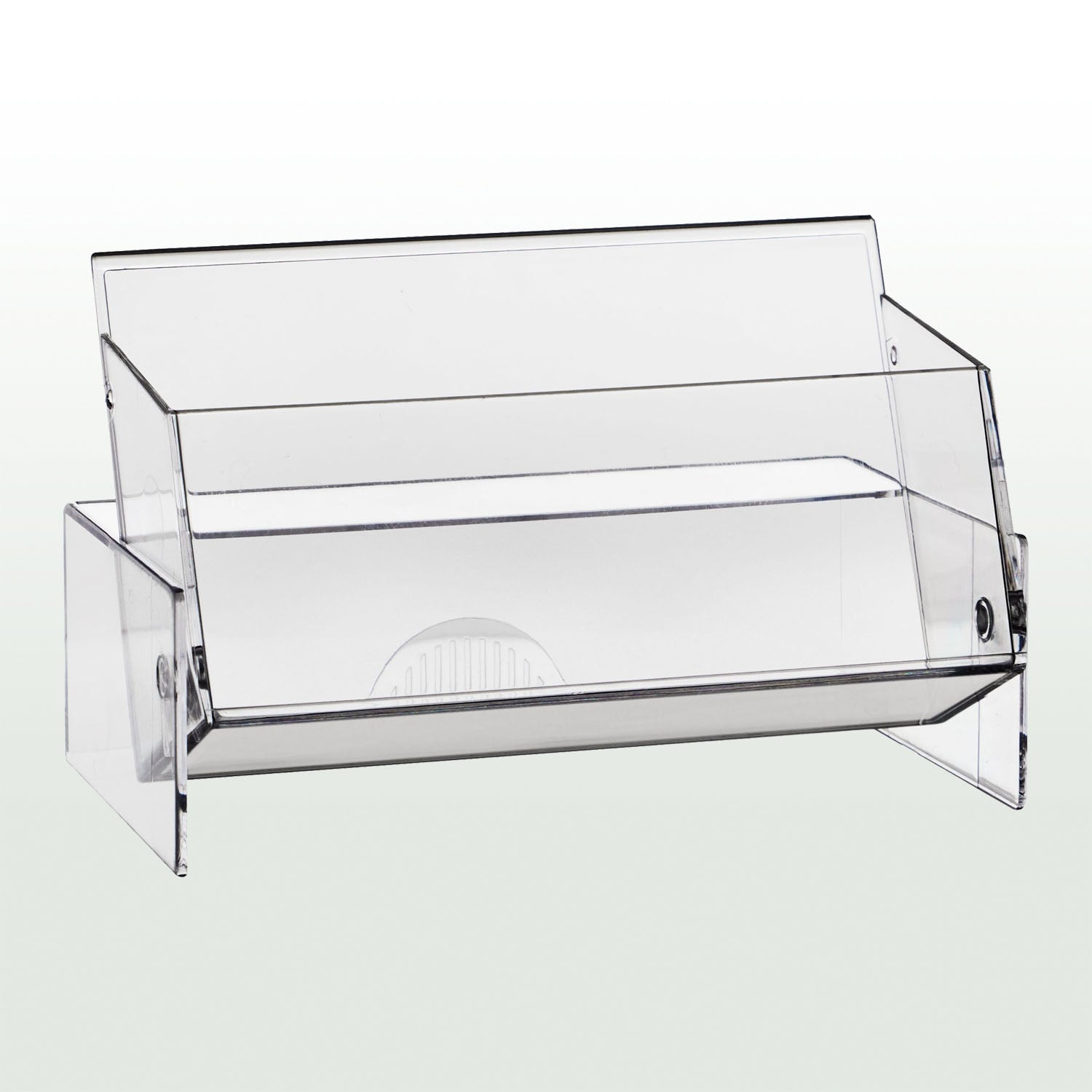 Visitenkartenbox aus glasklarem Polystyrol. Sie bietet Platz für ca. 50 Visitenkarten. Im geschlossenen Zustand dient sie als sichere Aufbewahrungsbox. Im aufgeklappten Zustand präsentiert sie die Karten auf Tischen oder Tresen.